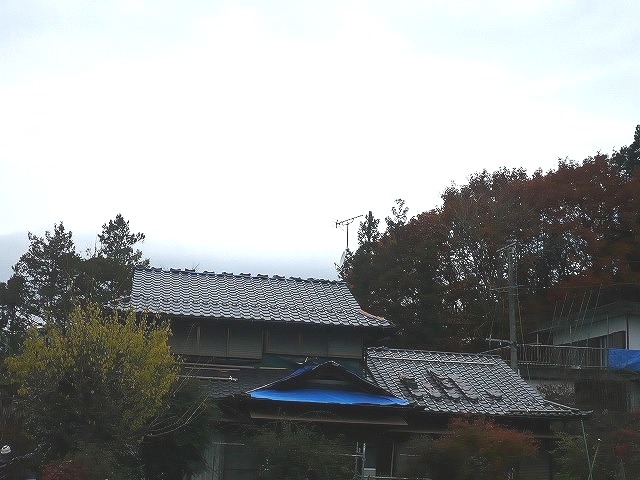 瑞浪市の屋根葺き替えの現場です。瓦を切断するとホコリがでますが、地上で切断しているため屋根もきれいでした。