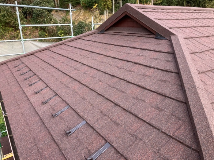 苔が目立っていた屋根が、ヴィクセンの落ち着いた質感によって、新築時のような(あるいはそれ以上の!)高級感あふれる佇まいに生まれ変わりました。