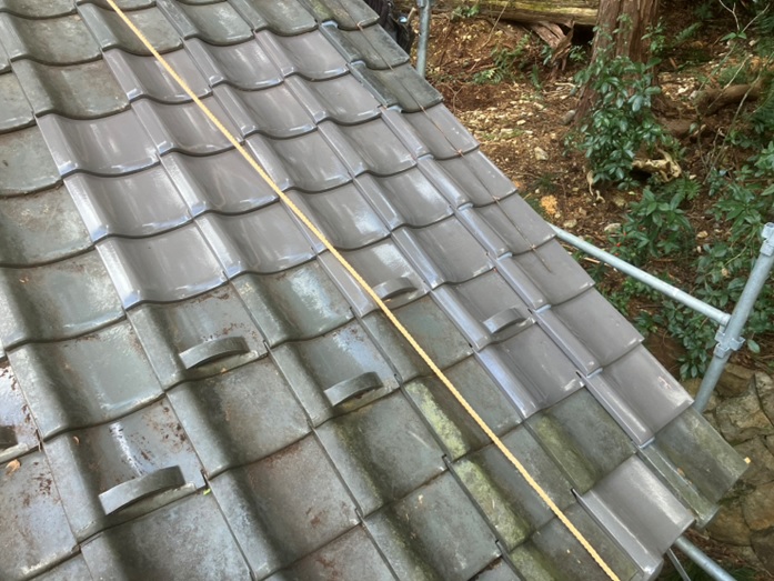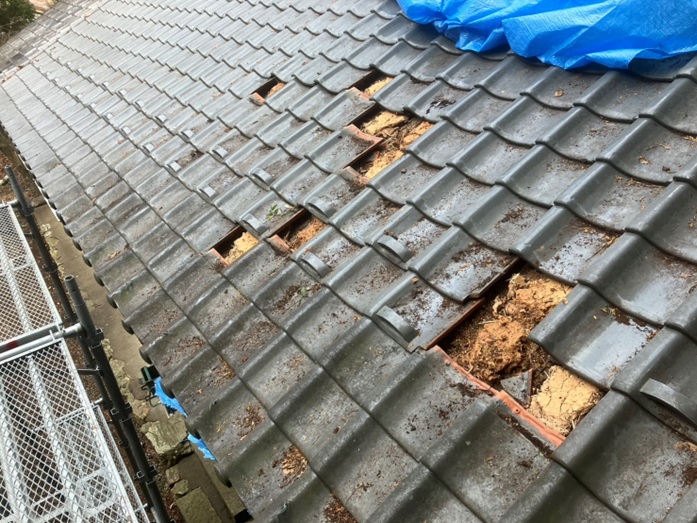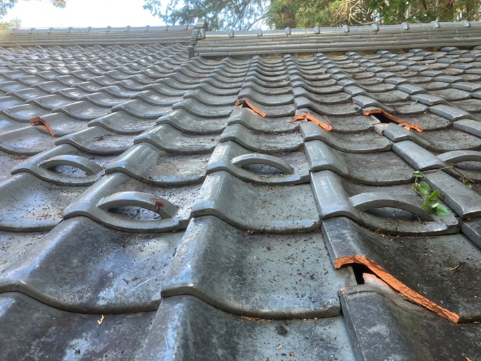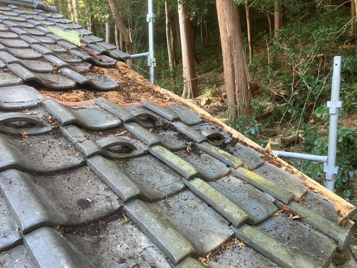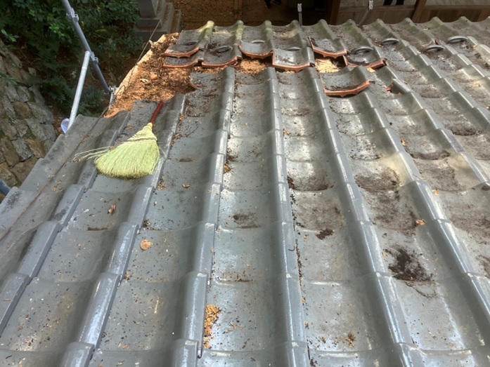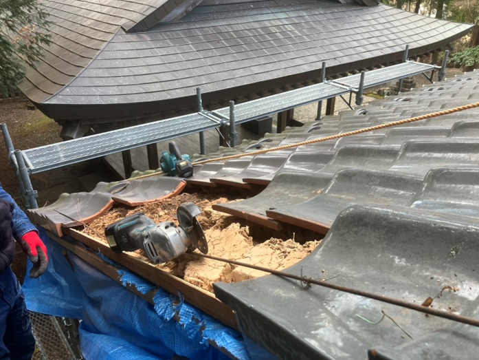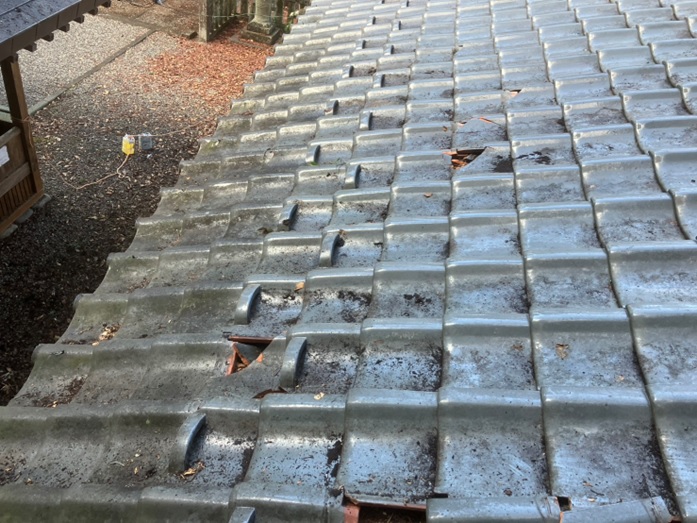 某神社の管理棟の屋根に木が倒れ、瓦が割れてしまったので直しに行って来ました。