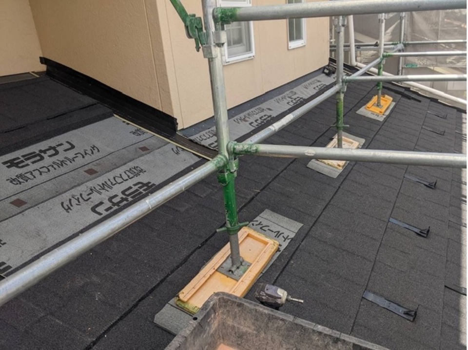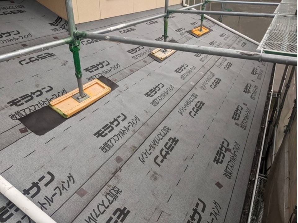 既存のスレート屋根材をめくらず、その上に防水シートを張ります。