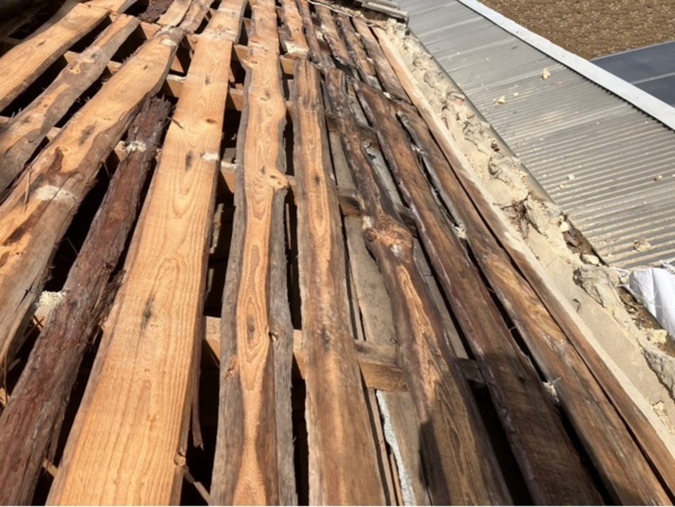 腐食したタル木の横に新品のタル木を打ち補強します。